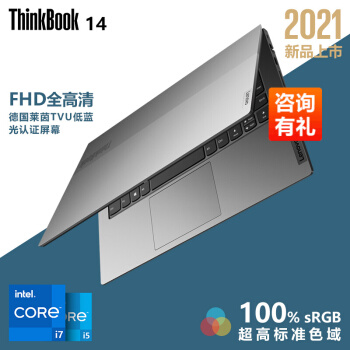 聯想ThinkBook 14 2021款 14英寸輕薄筆記本電腦 【6ACD】 11代酷睿i5-1135G7 核顯 16G 512G 100%sRGB 高色域 標配